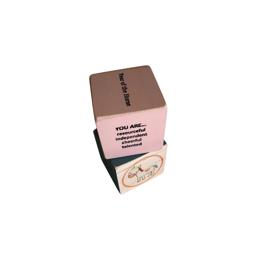 A handmade, hardwood keepsake block celebrating baby's year of birth. Based on the chinese zodiac, each year is named after an animal with traits said to belong to those born in that year. The Year of the Horse begins on February 17, 2026.
