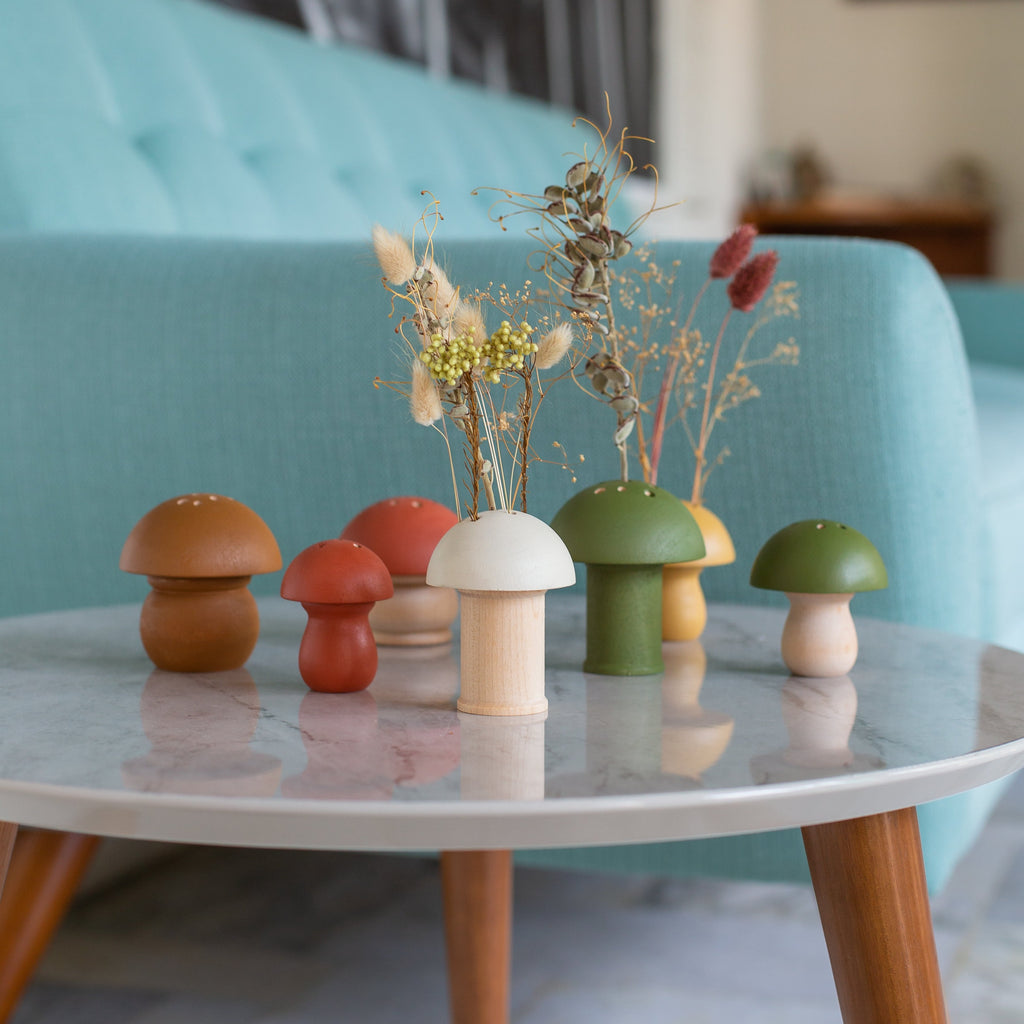 These mushroom vases are the perfect size for displaying dry flowers, enjoying cut flowers from the garden, and small, foraged treasures (feathers, seed pods). Create a minimal statement from a single specimen or artfully design a full arrangement (Ikebana style) to fit your decor and color favorites. The possibilities are endless!
