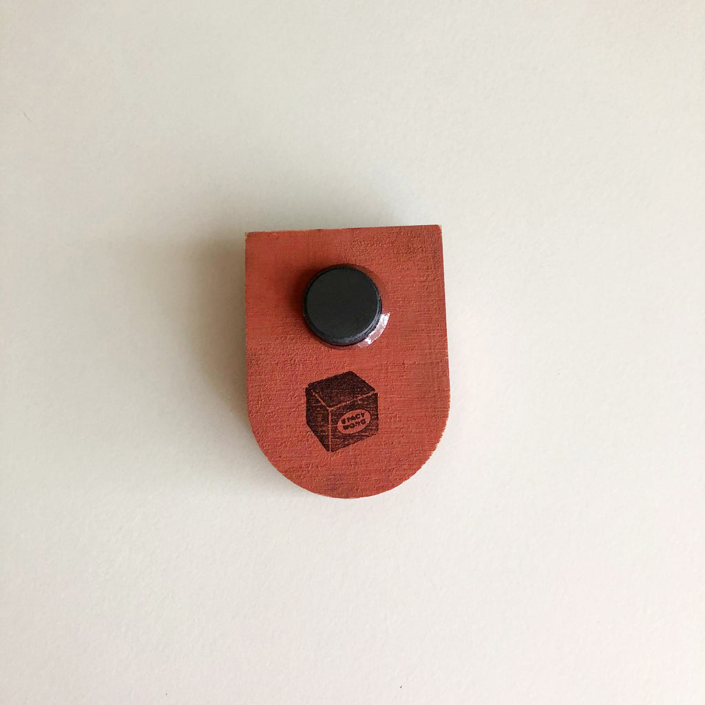 Handmade made with birch and pine wood. Super-strong steel magnet on back.
